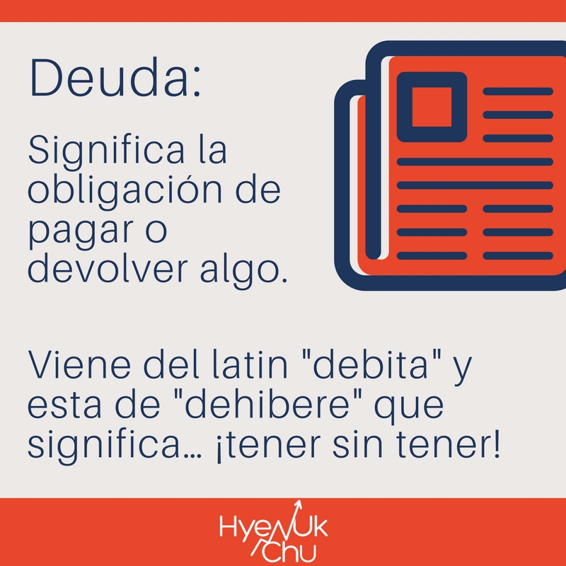 Empezaré por contarte que la palabra deuda, que significa la obligación de pagar o devolver algo, viene del latín debita y esta de dehibere que significa… ¡tener sin tener!